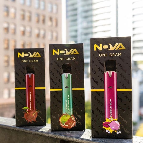 Nova flavors are as follows; Berry RNTZ, Blue Dream, Blue Razz, Blueberry Blast, Bubble Gum, Cherry Limeade, Cherry Splash, Cookies and Cream, Crystal Candy, Cucumber Lime, Exotic Cherry, Exotic Grape, Exotic Mango, Exotic Pineapple, Exotic Watermelon, Fruit Bedrock, Fruit Punch Cloudburst, Grape Lemonade, Ice Cream Sorbet, Jolly Rancher, Karibbean Mango, King Louis III, LA Kush, Marathon OG, Master Kush Natural, Mimosa, Native Sour Diesel, Native Sour Tangie Rosin, Natural Clementine, Natural Do Si Dos, Natural Fire OG, Natural Forbidden Fruit, Natural Gelato, Natural GSC, Natural Lemon Jack #9, Natural OG Kush, Natural Platinum OG, Northern Lighting, Pineapple Express, Purple Punch, Raspberry Haze, Sour Apple, Sour Berry Pie, Sour Diesel, Strawberry Cloudburst, Strawberry Lemonade, Strawberry Splash, Super Nova, Watermelon Splash Cloudburst, Wedding Cake, White Widow, and Wild in the Street Sherbert.